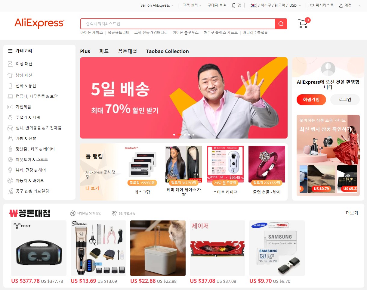 직구에 큰 즐거움 알리 익스프레스.